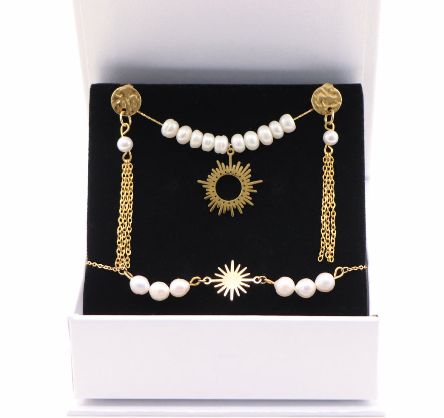 Découvrez le coffret exclusif "Trésor du Soleil", une invitation à rayonner avec élégance. Ce trio de bijoux raffinés associe la chaleur du soleil à la douceur des perles, créant un ensemble lumineux et intemporel.